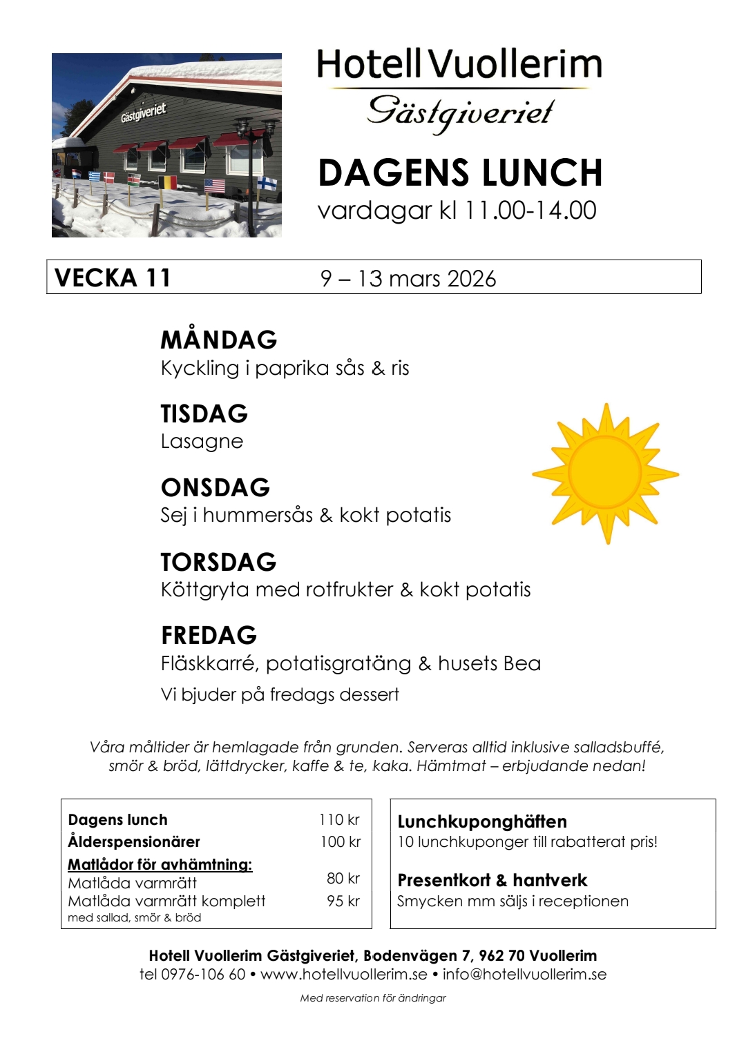 With us, you can do more than just stay and enjoy good food; you can discover the village of Vuollerim and its surrounding nature. Here, you will find beautiful places, annual events, and activities to enjoy.
